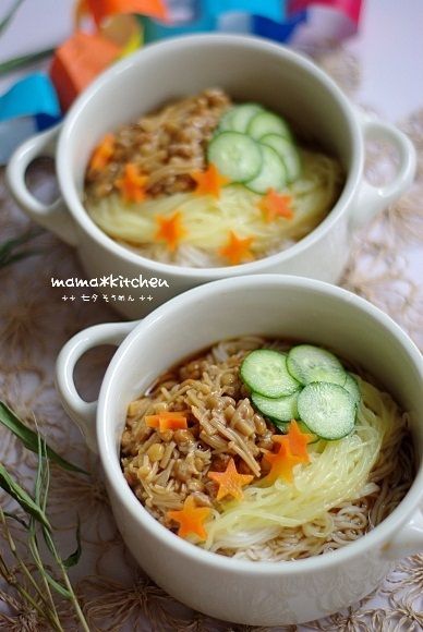 2012-7-9 09:11:33 七夕っぽく素麺と、レモン酵母のカンパーニュ! おはようございます~!七夕でしたね~(´∀`。)これといって、何もしてないんですが・・土曜日のお昼ごはんは、お素麺にしましたっ!少し七夕を意識して☆彡自家製なめたけに、納豆も加えて~!白いお素麺の上の、黄色い麺。これは、玉子とうふそうめん!!(。-∀-)お試しで購