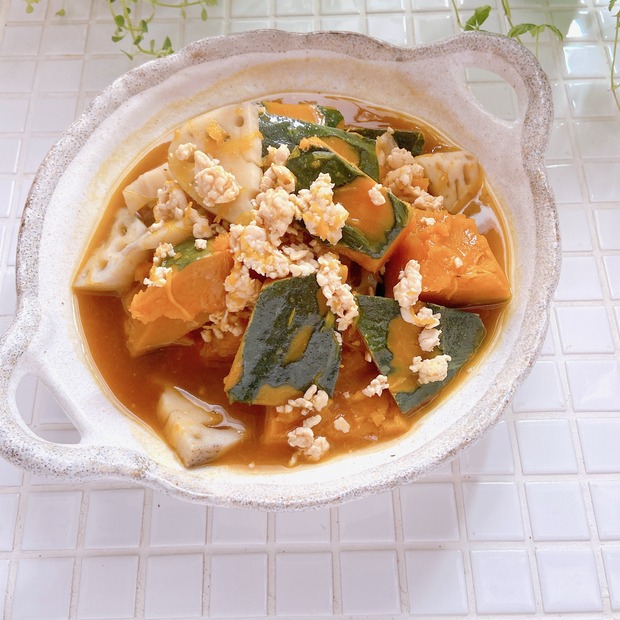 2022-10-14 13:30:00 かぼちゃとレンコンの甘辛そぼろ煮*歳をとると色々わかる。 こんにちは〜涼しくなると、こういうのが食べたくなります。かぼちゃとレンコンをコトコト煮込んで、取り出してから煮汁にとろみをつけて仕上げています。ほっこり安心する味わいです。かぼちゃとレンコンの甘辛そぼろ煮<材料> 3~4人分かぼちゃ(一口大より大きめに切る