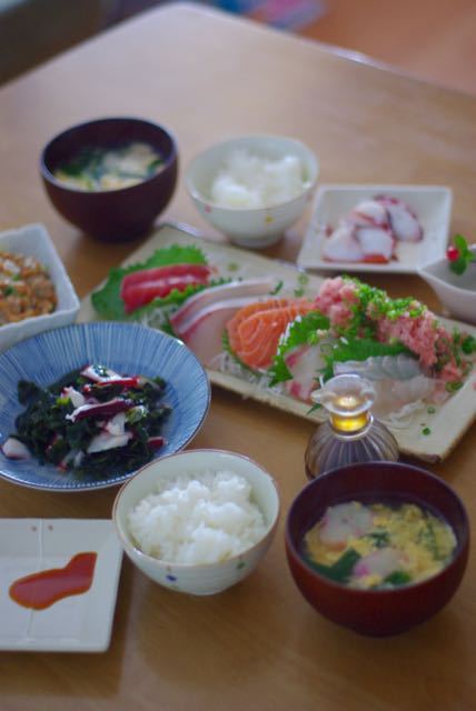2015-6-16 07:00:00 お刺身いろいろと、タコとわかめの酢の物。ドレッセンのエプロン。 暑いです~(;´Д`)ついに、夏バテの季節がやってきたようです。暑いのが苦手なんですが、この蒸し蒸しした梅雨の感じがまた・・・駄目。なぜ京都に住んでるんだ。。と年間2度思うのですが、一度は梅雨時期でもう一度は真冬ですね。底冷えね( ´༎ຶㅂ༎ຶ`) 期間で言った
